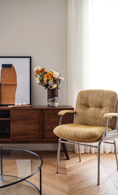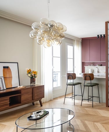 L’appartement, bien situé mais sans cachet particulier à l’origine, a été repensé dans son intégralité. L’objectif : révéler son potentiel, optimiser les volumes et lui offrir une véritable identité, chaleureuse, fonctionnelle et inspirante – à l’image de Léa.