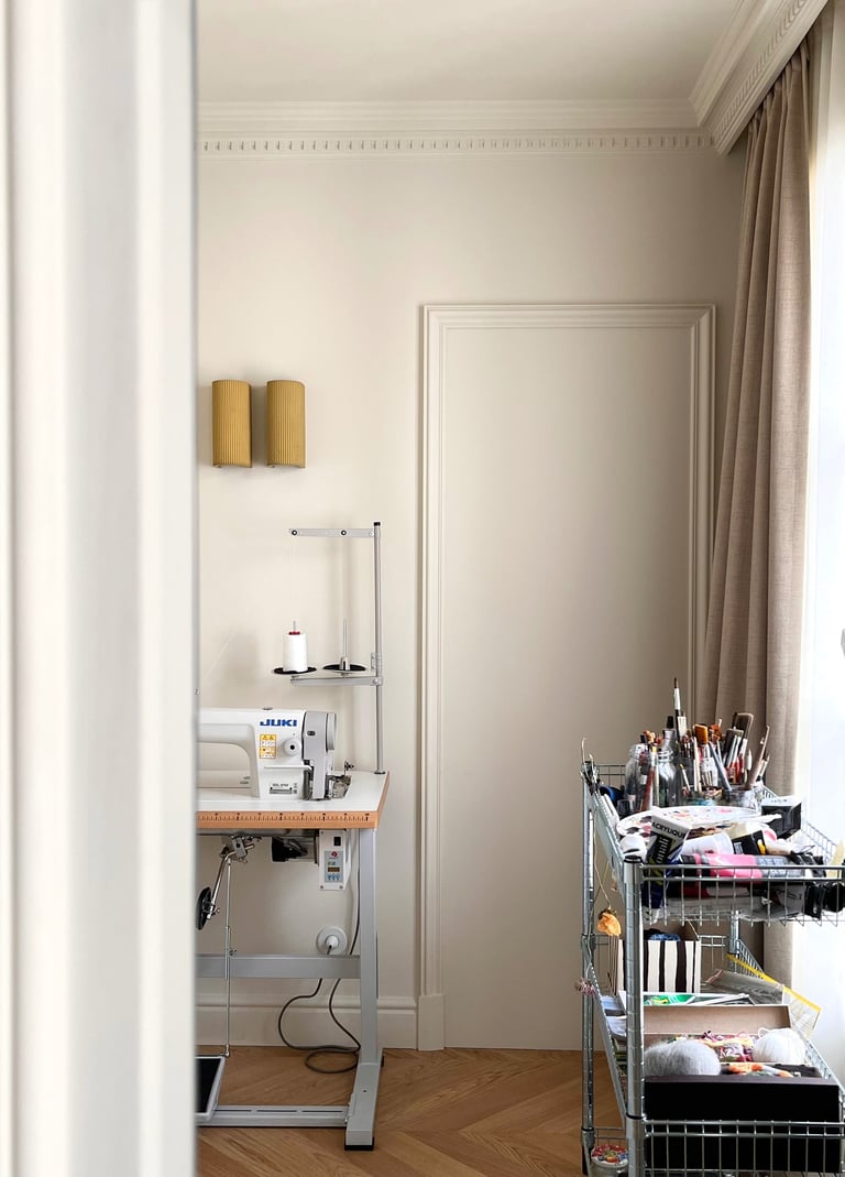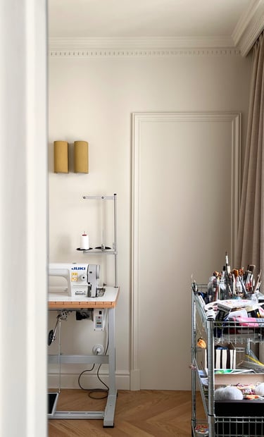 Cet espace devait rester libre, mobile, léger. Peu de mobilier, beaucoup de lumière. Les rangements sont intégrés, pensés pour disparaître, afin de laisser place à l’essentiel : la création. L’atelier de Léa n’est pas une simple pièce en plus, c’est un prolongement naturel de sa personnalité, une zone de respiration créative où la fonction se retire pour faire place à l’imaginaire.